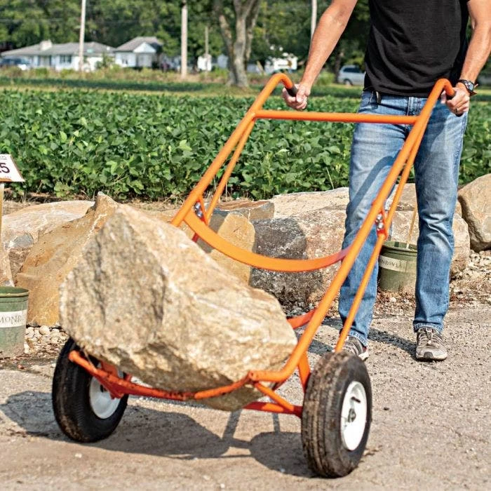 Leonard Tree Ball Carts have a curved front that provides a secure fit for balled and burlapped trees. The handle is designed to maximize leverage for tipping trees into position. The narrow width of 32 inches allows for easy access through gates and other tight spaces.